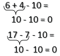 | 17 - 7 + 6 | 6 + 4 + 5 | 10 - 8 - 1 |