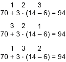 | 3 • 9 + (21 - 4) = 27 + 17 = 27 + 10 + 7 = 37 + 7 = 44 | 18 : (16 - 7) • 2 = 18 : 9 • 2 = 2 • 2 = 4 |