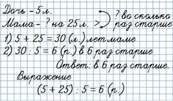 Дочери 5 лет, а мама на 25 старше дочери. Во сколько раз мама старше дочери?