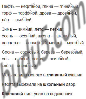 Образуй прилагательные с помощью суффиксов -ян, -н-, -ов.