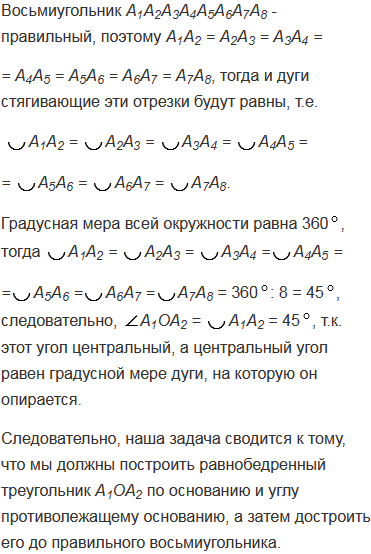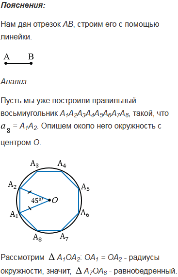 Постройте правильный восьмиугольник, сторона которого равна данному отрезку.