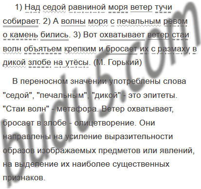 1. Выразительно прочитайте каждое предложение. Найдите слова, употреблённые в переносном значении. Докажите, что с помощью этих слов автору удаётся более выразительно и образно описать явления природы.