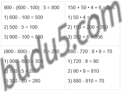 900 - (600 - 100) : 5 150 + 50 • 4 + 6