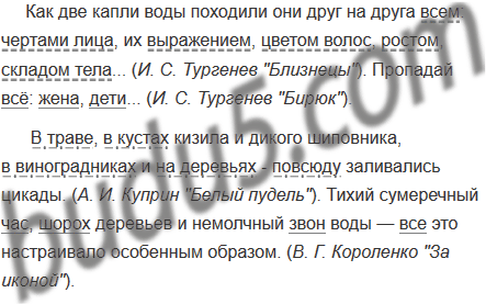 Найдите в художественных текстах и запишите по два-три предложения с обобщающим словом, стоящим перед однородными членами и после них.