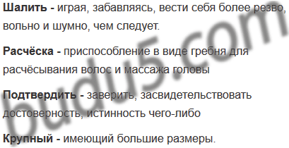 Представим себе, что пришелец, прилетевший с другой планеты, уже немного знает русский язык, но всё же некоторые слова остались для него непонятными. Как объяснить ему, что значат слова шалить, расчёска, подтвердить, крупный?