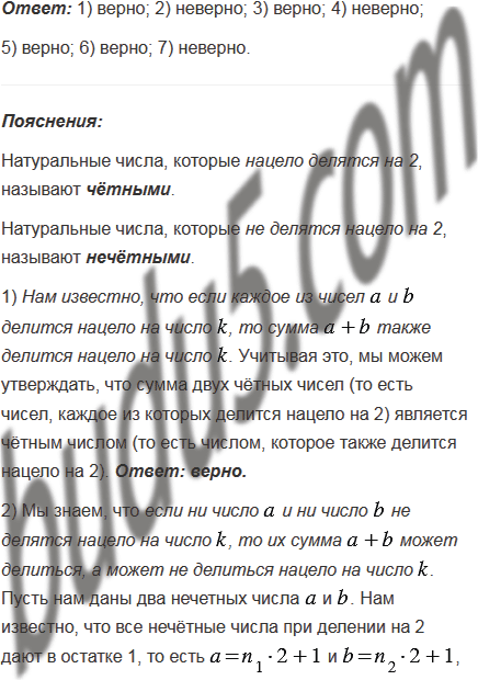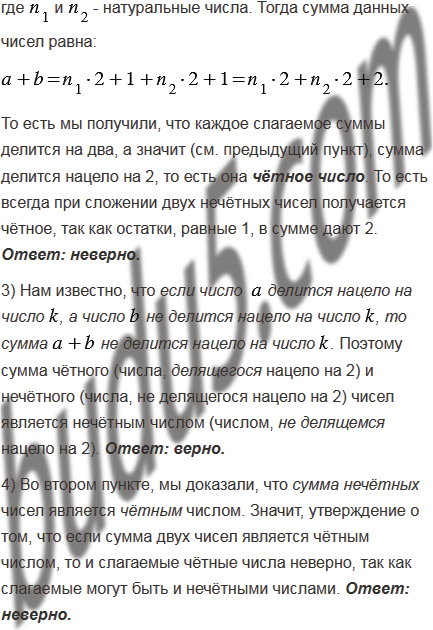 4) если сумма двух чисел является чётным числом, то и слагаемые чётные числа;