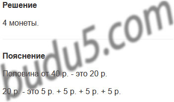 Задание № 21. В кошельке у Васи 40 рублей, причём половина денег пятирублёвыми монетами, а остальные - другими монетами. Сколько у Васи пятирублёвых монет?