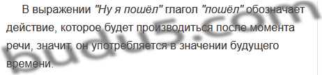 В значении какого времени употребляется прошедшее время в выражении «Ну, я пошёл»?