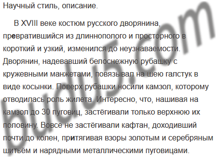 В XVIII веке костюм русского дворянина превратившийся из длиннополого и просторного в короткий и узкий изменился до неузнаваемости.4 Дворянин надевавший белоснежную рубашку с кружевными манжетами повязывал на шею галстук в виде косынки.4 Поверх рубашки носили камзол, которому отводилась роль жилета. Интересно, что, нашивая на камзол до 30 пуговиц, застёгивали только верхнюю их половину. Вовсе не застёгивали кафтан доходивший почти до колен притягивая взоры золотым и серебряным шитьём и нарядными металлическими пуговицами.