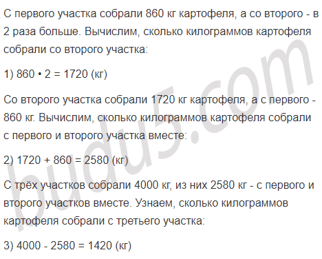 Задание № 9. С трёх участков собрали 4 т картофеля. С первого участка собрали 860 кг, со второго - в 2 раза больше, чем с первого. Сколько килограммов картофеля собрали с третьего участка?