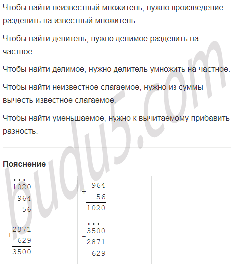 а) • 6 = 720 | в) 850 : = 50 | д) 964 + = 1020 |