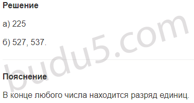 а) Назови число, оканчивающееся цифрой 5, которое больше 216, но меньше 235.