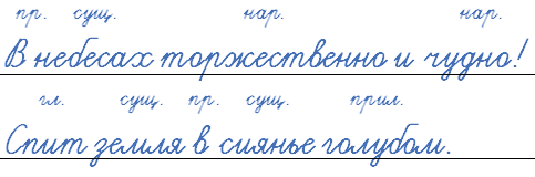 В (пред.) небесах (сущ.) торжественно (нар.) и (союз) чудно (нар.)!