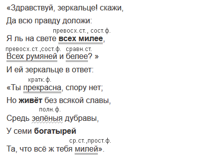 1. Прочитайте отрывок из сказки Александра Сергеевича Пушкина. Спишите, подчёркивая прилагательные как члены предложения. Укажите их форму.